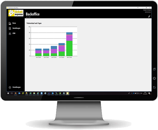 Mit der Ticket Express Desktop Applikation behalten Sie stets den Überblick über ihre Veranstaltung. Neben der Wartung alle notwendigen Parameter ist auch eine komfortable Point of Sales-Funktionalität integriert, die den Ticketverkauf bei Promotion-Einsätzen oder im Vorverkauf beim Veranstalterbüro zum Vergnügen werden lässt. Ihr aufgelaufenen Umsätze und Gebühren können auf Knopfdruck abgerufen werden. So kommt es zu keiner Überraschung bei der Endabrechnung.